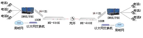 (2)可提供最多16路E1的透明傳輸,同時(shí)提供一個(gè)線速為100M以太網(wǎng)通道